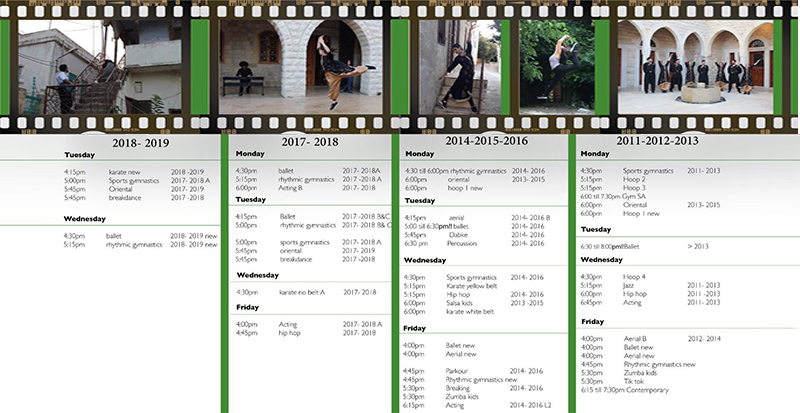 This schedule can be modified. For Further information, please contact Chantal RABAY: 03-547152 or Swandance: 08-807447 or mail us: info@swandance.net or swandance_zahle@hotmail.com or visit our website: www.swandance.net